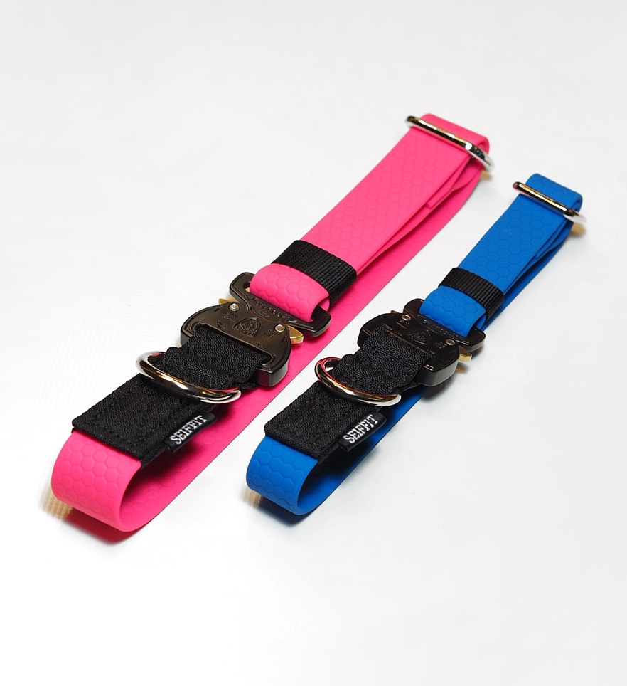 Nyt myös kaulapannat talutushihnoista tutusta vedenpitävästä hexa -materiaalista!